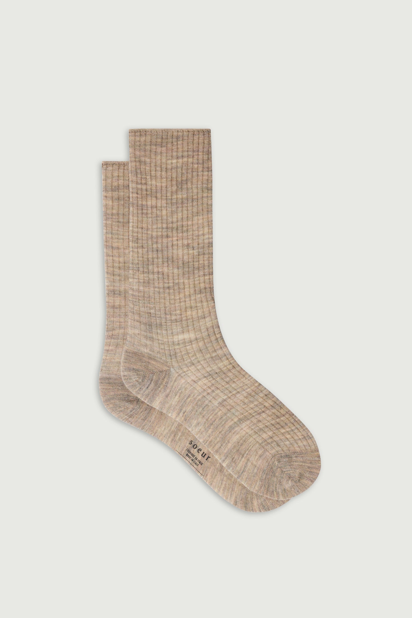 Calcetines finos de canalé beige jaspeado