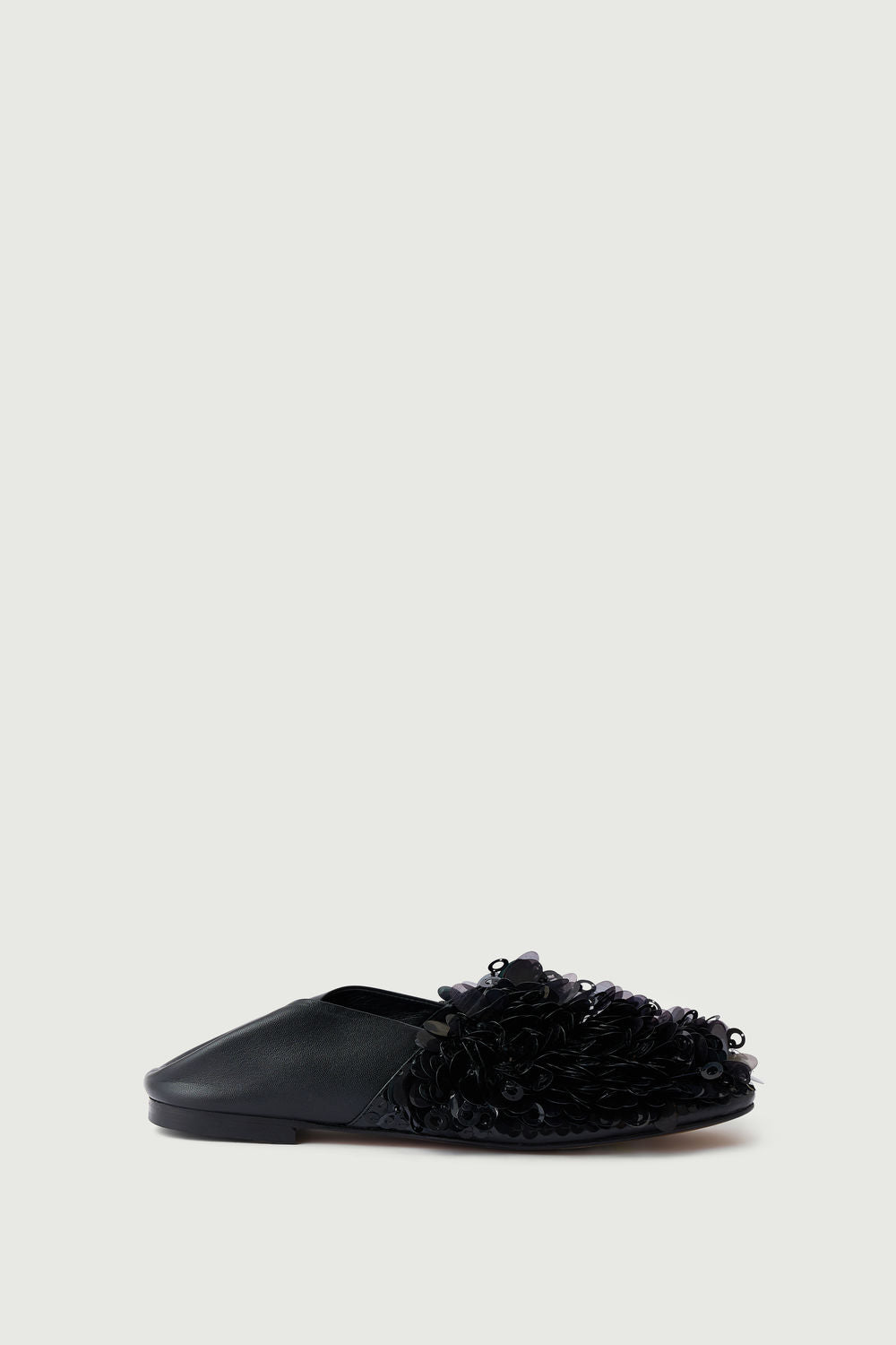 Mocasines de piel negra y lentejuelas bordadas