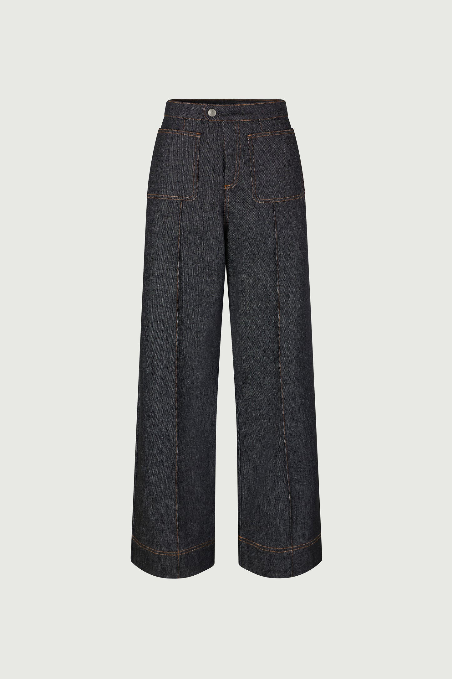 Pantalón recto ligeramente acampanado de denim negro crudo de algodón orgánico- Corte recto ligeramente acampanado