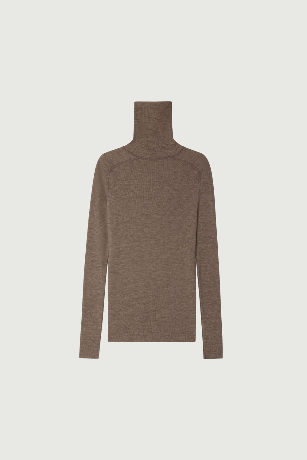 Jersey de cuello alto de lana con diseño de canalé castaño
